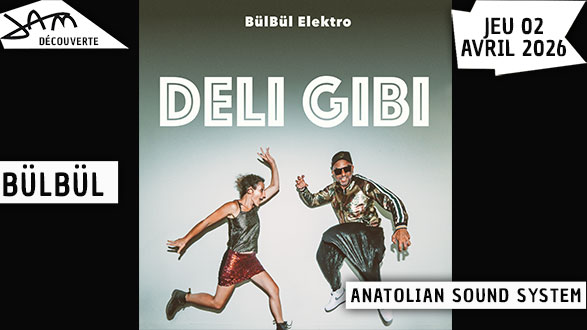 Un binôme électrisant aux racines balkaniques et anatoliennes. Le duo tisse une transe festive où le passé flirte avec le futur, sous une boule à facettes retro-orientale. La chanson en turc et en roumain navigue entre synthés analogiques, saz électrique et boîtes à rythmes vintage. Entre sound system et concert live, BülBül Elektro brouille les frontières du live et de la performance psyché. Rythmiques implacables des machines et mélismes envoûtants attirent irrémédiablement sur le dancefloor !